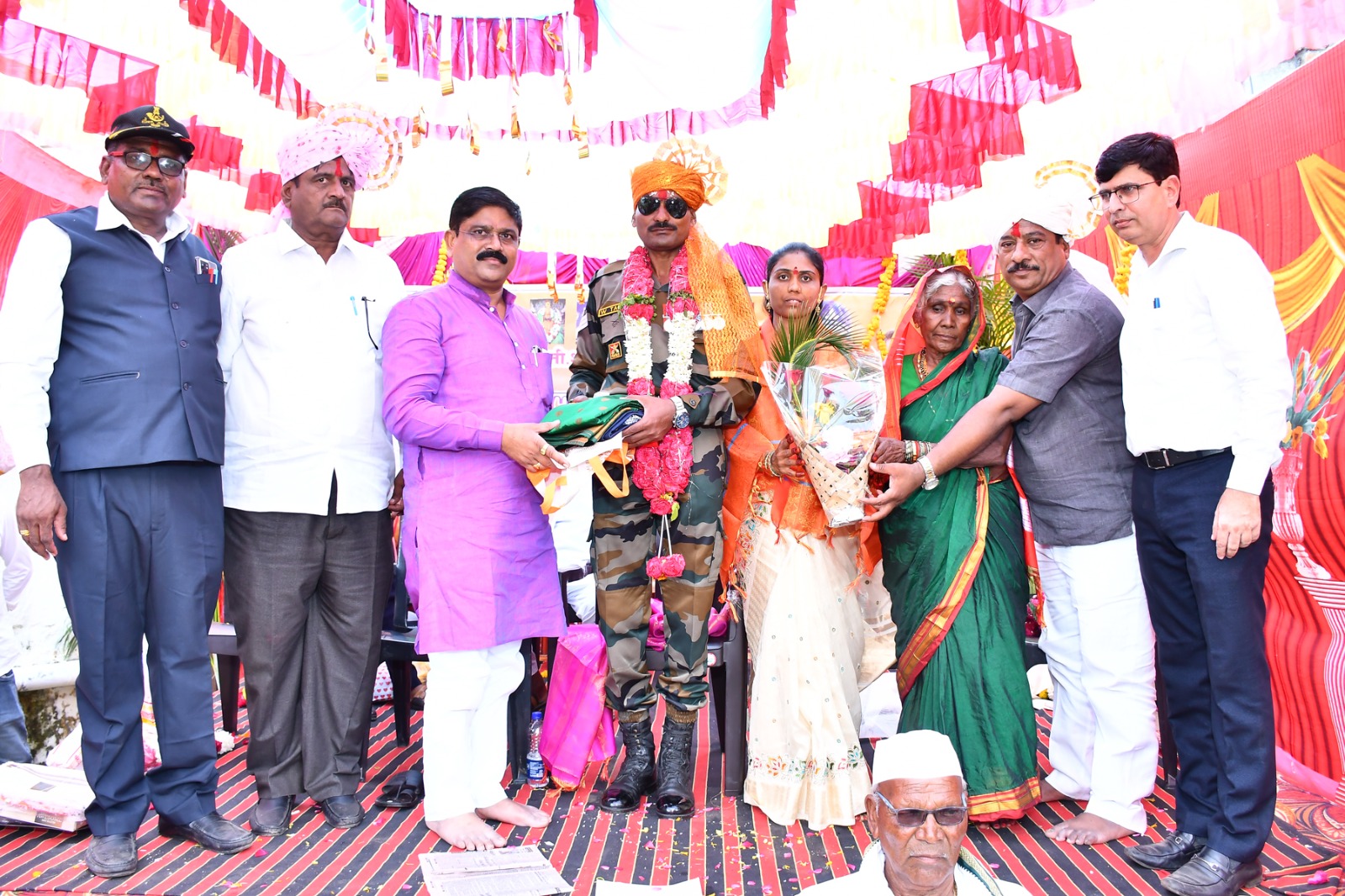 सदर कार्यक्रमात 24 वर्ष भारतीय सैन्य दलात श्री तानाजी यांनी सेवा करून निवृत्त झाल्याबद्दल मा आमदार ज्ञानराज चौगुले यांच्या हस्ते त्यांचा सपत्नीक सत्कार करण्यात आला, कार्यक्रमाच्या अध्यक्ष स्थानी माजी उपसरपंच दादाराव वडदरे तर प्रमुख पाहुणे माजी सैनिक संघटनेचे जिल्हाध्यक्ष शहाजी चालुक्य, स्वातंत्र्यसैनिक मारुती साळुंखे, उमरगा शिवसेना तालुका प्रमूख बळी मामा सुरवसे,यांच्या सह माजी सैनिक दत्तात्रय वडदरे,कालिदास मंडले, मोहन कर्णे,अशोक कोठावळे, बालाजी काळे,बाळू आष्टे रामकृष्ण मनोरे, विजय चव्हाण,यांचा ही सत्कार करण्यात आला.यावेळी गावचे सरपंच सुभाष राठोड, पोलीस पाटील सुनील पाटील, तंटामुक्ती अध्यक्ष काशिनाथ वडदरे,भारत शिक्षण संस्था संचालक दिगंबर बिराजदार मुळज, ज्ञानज्योती सामाजिक बहुउद्देशीय संस्थेचे उपाध्यक्ष विजय शेषेराव वडदरे,कोषाध्यक्ष अमर देशटवार ,प्रा युसुफ मुल्ला, अमर परळकर, राजू फुलारी, विजय शिंदे, सतीश कस्तुरे, श्रीकांत वडदरे, परशुराम राठोड, शिवाजी जाधव, रवी मोरे, शिवाजी दादाराव वडदरे , उल्हास वडदरे, सह नातेवाईक , मित्र परिवार , ग्रामस्थ मोठ्या संख्येने उपस्थित होते.