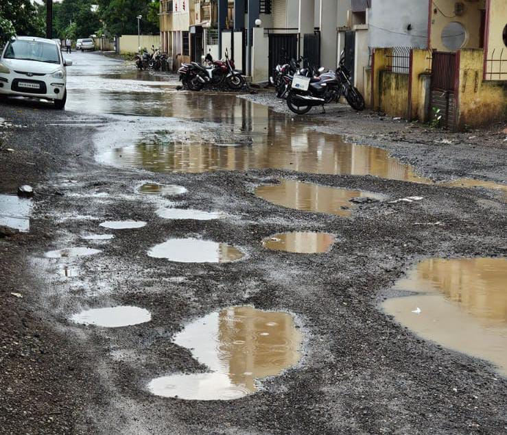 नवीन वसाहतीतील मुख्य रस्त्याची दुरवस्था झाली असुन त्याला मोठं मोठे खड्डे पडल्याने चिमुकल्यांनाही शाळेत जाताना मोठी कसरत करावी लागते. रहदारीचा मुख्य रस्ता असल्याने ह्या रस्त्यावरून नेहमी वर्दळ असते. रस्त्यावरील खड्डे पाण्याखाली गेल्याने वाहन चालविताना खड्ड्यांचा अंदाज येत नाही. त्यांना साचलेल्या पाण्यातूनच रस्त्याने जावे लागत आहे. नगर परिषद प्रशासनाने यावर काही तरी उपाय योजना करण्याची मागणी होत आहे.