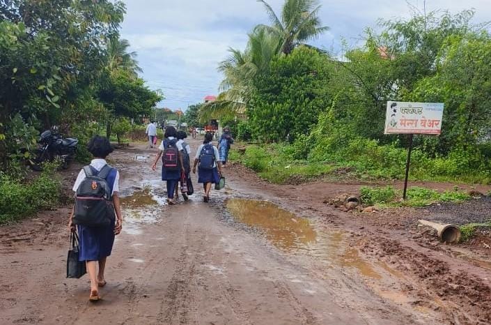 जून पासून पावसाळा सुरू झालेला असून ज्या मार्गाने विद्यार्थी जातात त्या मार्गाने पूर्णता चिखल आणि गुडघ्या इतके पाणी साचते तरी देखील ग्रामपंचायत प्रशासन या बाबीकडे गांभीऱ्याने लक्ष न देता बग्याची भूमिका घेत असल्याने पालकात या बाबतीत तीव्र नाराजी व्यक्त होत आहे या रस्त्याची तात्काळ दुरुस्थी करून विध्यार्थ्यांना होणारा त्रास कमी करावा अशी ग्रामस्थ तथा विध्यार्थ्यां कडून होत आहे,