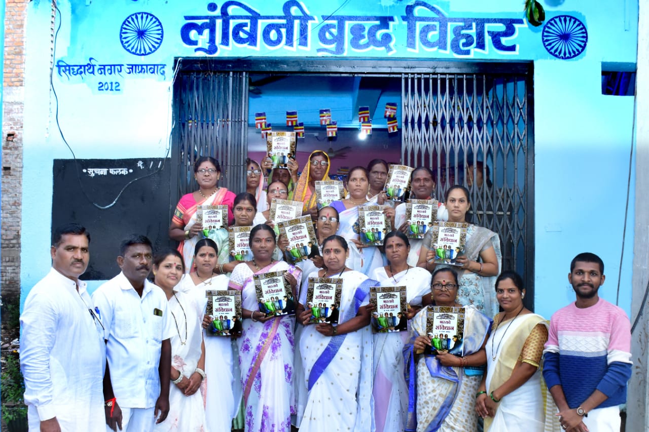 जाफराबाद शहरातील नामांकित असलेल्या सिद्धार्थ नगर येथील लुंम्बुनी बुद्ध विहारात श्रद्धावान उपासक आयु.सौ.सरला विजय(फौजी) बोर्डे यांच्या वतीनं वर्षावासात येणारी श्रावण पौर्णिमा संविधान ग्रंथ वाटप करुन साजरी करण्यात आली.सिध्दार्थ नगर येथील लुंम्बुनी बुद्ध विहारात वर्षावास सुरु झाल्या पासून आमच्या नगरातील माता भगिनीं यांनी दरवर्षी “बुद्ध आणि त्यांचा धम्म” या ग्रंथाचे वाचन करण्याचा निर्णय घेतला.दररोज संध्याकाळी तीस-पस्तीस महिला ग्रंथ वाचनास नित्यनेमाने उजपस्थित राहुन बुद्ध आणि त्यांचा धम्म या ग्रंथाचे पठण करतात.याच निम्मिताने बोर्डे परिवाराच्या वतीनं जाफराबाद नगरपंचायतीच्या माजी नगरसेविका सौ.प्रमिला अनिल बोर्डे यांनी पन्नास संविधान ग्रंथ वाटप करुन महिलांना भारताचे संविधान वाचून सक्षम व्हावे असे आव्हान केले.त्यांनी सर्वांशी बोलतांना सांगितले की,याच संविधानामुळे मला नगरसेविका होता आले.आज रक्षा बंधन श्रावण पौर्णिमा असल्यामुळे प्रत्येक माझ्या भगिनींनी हा ग्रंथ वाचावा व आपल्या अधिकार आणि कर्तव्ये जाणुन घ्यायला पाहिजे तरच आम्ही बाबासाहेब आंबेडकरांचे व माता रमाई चे अनुयायी शोभू.सिध्दार्थ नगर येथील लुंम्बुनी बुद्ध विहारात सिद्धार्थ महाविद्यालयाचे प्रा.अनिल वैद्य हे नित्यनेमाने बुद्ध आणि त्यांचा धम्म या पवित्र ग्रंथाचे वाचन करून सर्व माता भगिनींना सोप्या भाषेत ग्रंथ समजावून सांगण्याचे काम करत आहेत.याच पोर्णिमेच्या निम्मिताने सिद्धार्थ नगर येथील श्रीमती केसरबाई बोर्डे,श्रीमती कमलबाई पारवे,श्रीमती शेनफडाबाई दांडगे ,सौ.कल्पना वैद्य,सौ.सरला बोर्डे,सौ.छाया गायकवाड,सौ.जयश्री वाघमारे,सौ.सुनीता जाधव,सौ.सुनंदा आढावे,सौ.शोभा आढावे,सौ.रेखा आढावे,श्रीमती सिंधुबाई आढावे,सौ.कुसुम राऊत,श्रीमती सिंधुबाई बनकर,सौ.अस्मिता मगरे,सौ.आर्चना मगरे,सौ.मनकरनाबाईभाऊराव लोखंडे,कु.नितीशा बोर्डे, अभिषेक बोर्डे,आयु.दिलीप मगरे,संजय कासारे व सिद्धार्थ नगर येथील सर्व समाज बांधव मोठ्या संख्येने उपस्थित होते.