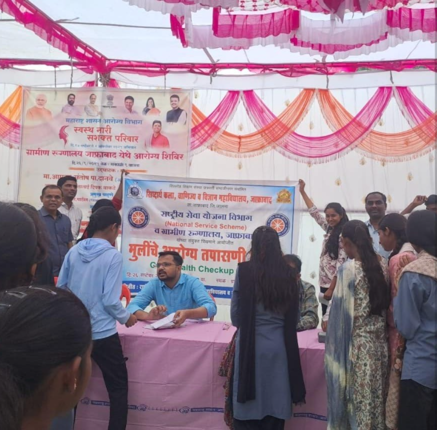 जालना : जाफराबाद तालुक्यातील सिद्धार्थ महाविद्यालयातील राष्ट्रीय सेवा योजना विभाग , जाफराबाद आणि ग्रामीण रुग्णालय, जाफराबाद यांच्या संयुक्त विद्यमाने महाविद्यालयात विद्यार्थिनींसाठी मोफत आरोग्य तपासणी शिबिराचे आयोजन करण्यात आले. या शिबिरात महाविद्यालयातील सर्व विद्यार्थिनींनी उत्स्फूर्तपणे सहभाग नोंदविला. हे
