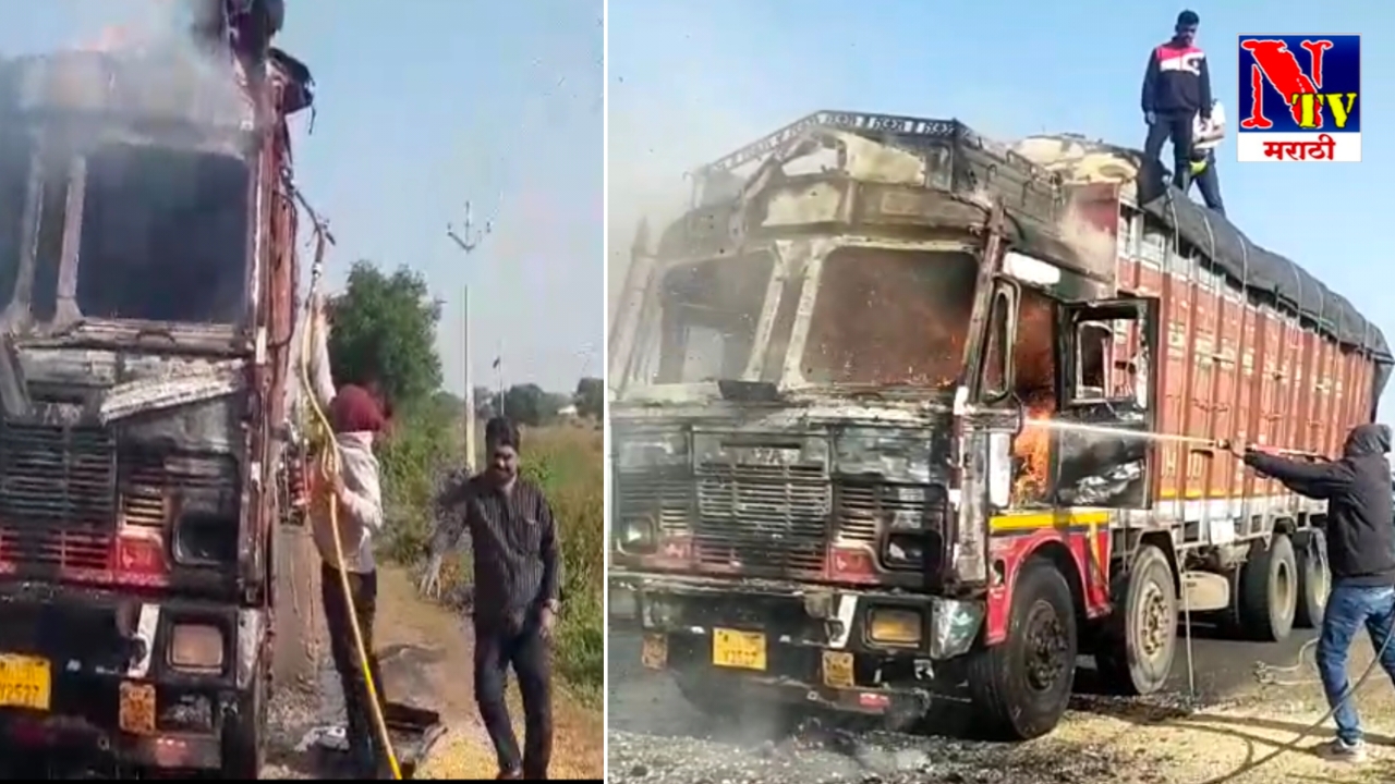 धावत्या ट्रकच्या इंजिनमध्ये आग लागल्याने ट्रकची केबिन पूर्णपणे जळून खाक झाल्याची घटना बुलढाण्याच्या सिंदखेडराजा जालना रोडवर घडली आहे. परंतु, चालकाच्या प्रसंगावधानामुळे ट्रक मध्ये असलेले लाखो रुपयांचे सोयाबीन वाचवण्यात यश आले आहे.