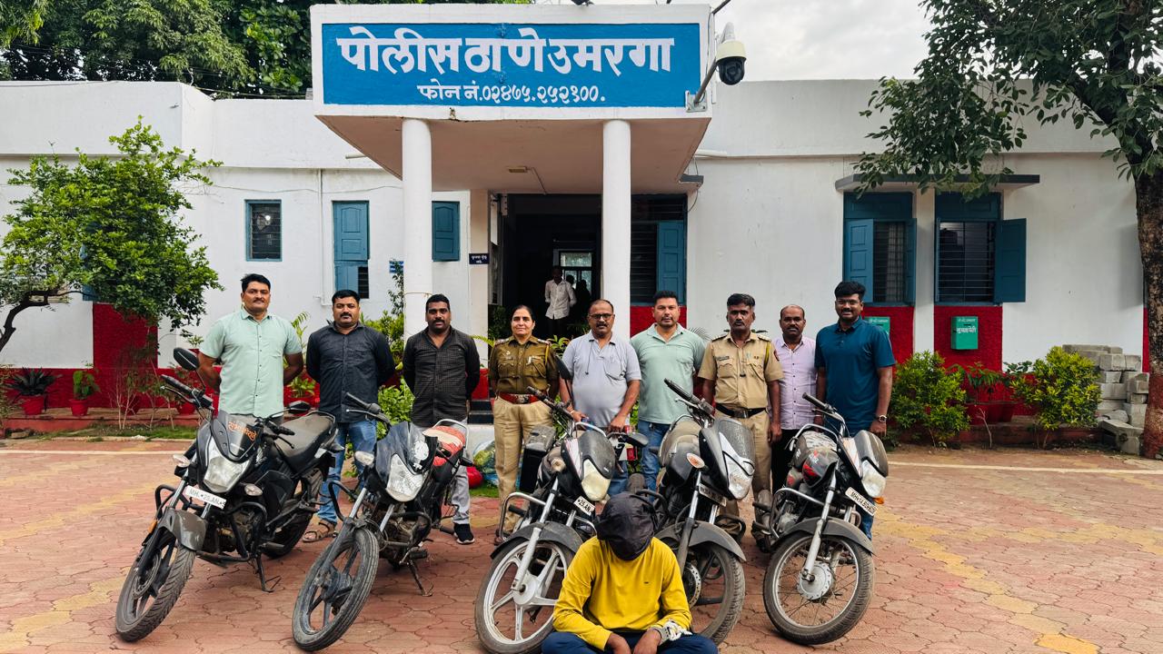 सविस्तर वृत्त मागील कांही कालावधी पासुन उमरगा पोलीस ठाण्याच्या हद्दीत दुचाकी सायकल चोरीचे प्रकार मोठ्याप्रमाणात घडत असल्याने पोलीस निरीक्षक अश्विनी भोसले व गुन्हे प्रकटीकरण पथकातील अंमलदार हे दि. 3 जुलै रोजी पो.स्टे. हद्दीत मोटार सायकल चोरीचे गुन्हयातील आरोपी व मोटार सायकलचा शोध घेत असताना, गुप्त बातमी मिळाली की, भारतीय स्टेट बैंक शाखे समोर एक इसम होन्डा यूनिकॉर्न मोटार सायकलवर संशयीतरित्या फिरत आहे अशी माहिती मिळाता क्षणी संबंधित ठिकाणी जावुन खात्री केली असता, कुमार थॉमस अकुला वय 32 वर्षे रा. कपराला थिप्पा, ता. बोगेले जि. नेल्लुर राज्य आंधप्रदेश हा संशयीतरित्या थांबलेला मिळुन आल्याने त्यास त्याच्या ताब्यातील होन्डा युनिकॉर्न मोटार सायकलचे कागदपत्राबाबत चौकशी केली असता तो उडवा उडवीचे उत्तरे देवु लागल्याने सदर मोटार सायकलचा संशय आला. मोटार सायकल बाबत ऑनलाईनव्दारे खात्री केली असता सदर मोटार सायकल पो.स्टे. कोरत्तुर जि. रंडहिल्स राज्य-तामीळनाडु सीएसआर नं. 515/2025 या गुन्हयातील मोटार सायकल असल्याचे निष्पन्न झाले. त्यास पोलीसी खाक्या दाखवताच त्यांने उमरगा शहरातुन मोटार सायकल चोरल्याचे सांगितल्याने त्यास पो.स्टे. उमरगा गुर.नं 404/2025 गु.र.नं 428/2025, गु.र.नं 357/2025 या गुन्हयात अटक करून त्याची पोलीस कस्टडी घेवुन त्याचेकडुन खालील नमुद वर्णनाचे व किमतीचे मोटार सायकल जप्त केले.