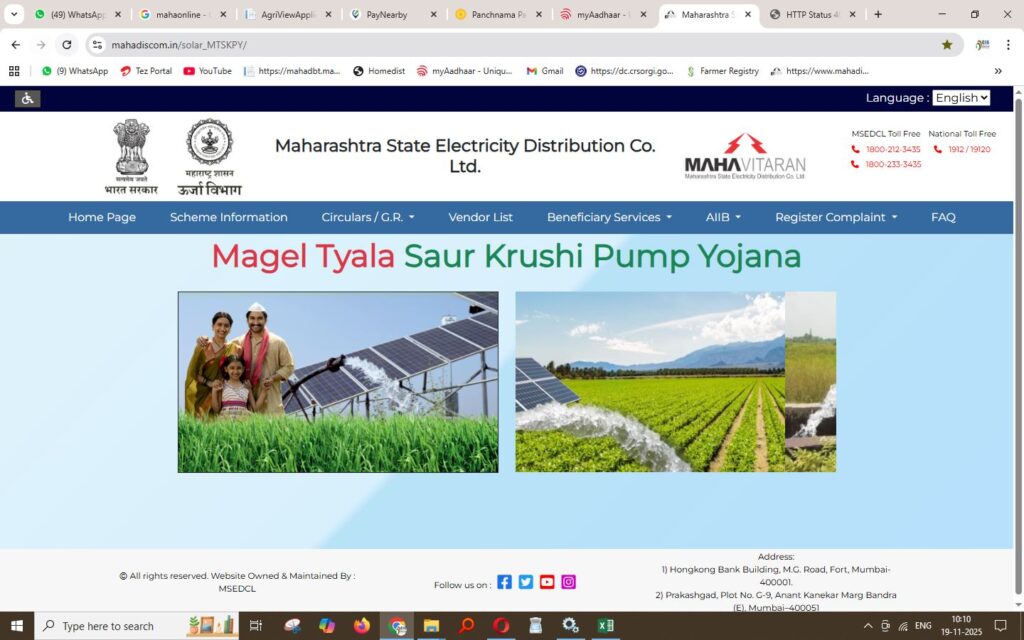 राज्यातील “मागेल त्याला सौर कृषी पंप योजना” अंतर्गत अनेक शेतकऱ्यांनी ऑनलाइन पेमेंट पूर्ण केले असतानाही संबंधित संकेतस्थळ गेल्या अनेक दिवसांपासून ठप्प असल्याची तक्रार पुढे येत आहे. यामुळे अर्जाच्या पुढील प्रक्रियेत अडथळे निर्माण होऊन शेतकरी मोठ्या संभ्रमात सापडले आहेत.