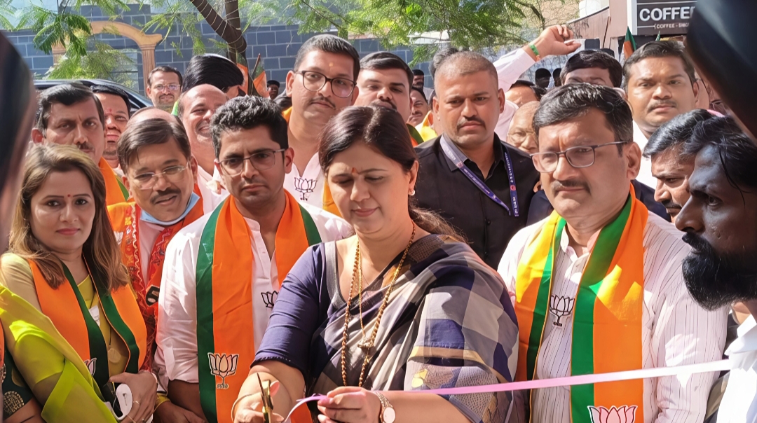 भाजपच्या उमेदवाराच्या प्रचार कार्यालयाचा पंकजा मुंडेंच्या हस्ते शुभारंभ.