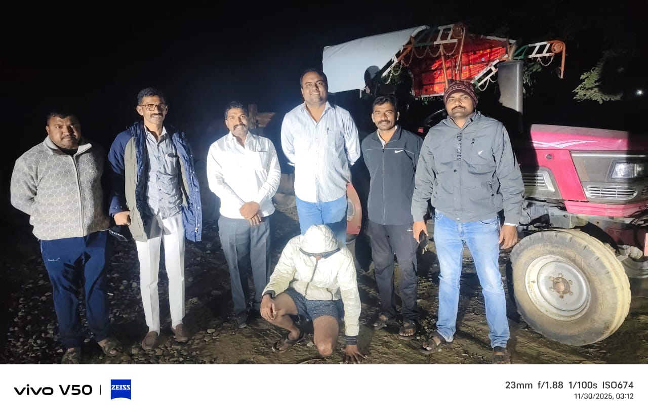 वरील पथक दिनांक 30/11/2025 रोजी पहाटे जामखेड पोलीस ठाणे हद्दीमध्ये अवैधरित्या गौणखनिजांचे उत्खनन करुन वाहतुक करणारे इसमांची माहिती काढत असतांना पथकास आरणगांव ते हाळगांव रोडने ट्रॅक्टर ट्रॉली मध्ये गौणखनिज वाळु भरुन चोरुन चौंडीवरुन हळगांव मार्गे फक्राबाद कडे जाणार असल्याची माहिती मिळाली. पथकाने तात्काळ फक्राबाद गांवचे शिवारामध्ये हॉटेल मामाश्री जवळ जावुन सापळा रचुन थांबले असता बातमीतील वाहन येतांना दिसले. त्यावेळी पथकाची खात्री झाल्याने पथकाने नमुद ट्रॅक्टर थांबवुन खात्री केली असता ट्रॅक्टरच्या ट्रॉलीमध्ये वाळु भरलेली असल्याचे दिसुन आले. पथकाने ट्रॅक्टर चालकास त्याचे नांव गांव विचारता ट्रक चालकाने त्याचे नांव 1) रविंद्र उर्फ राम बाबासाहेब उबाळे वय – 26 वर्षे रा. चौंडी, ता. जामखेड जि. अहिल्यानगर असे असुन चालक माल मी स्वतः असल्याचे सांगितले.आहे. त्यास सदर वाळु वाहतुकी बाबत परवाना आहे काय? याबाबत विचारले असता त्याचेकडे कोणतेही परवाना अगर रॉयल्टी पावती नसल्याचे सांगितले आहे.