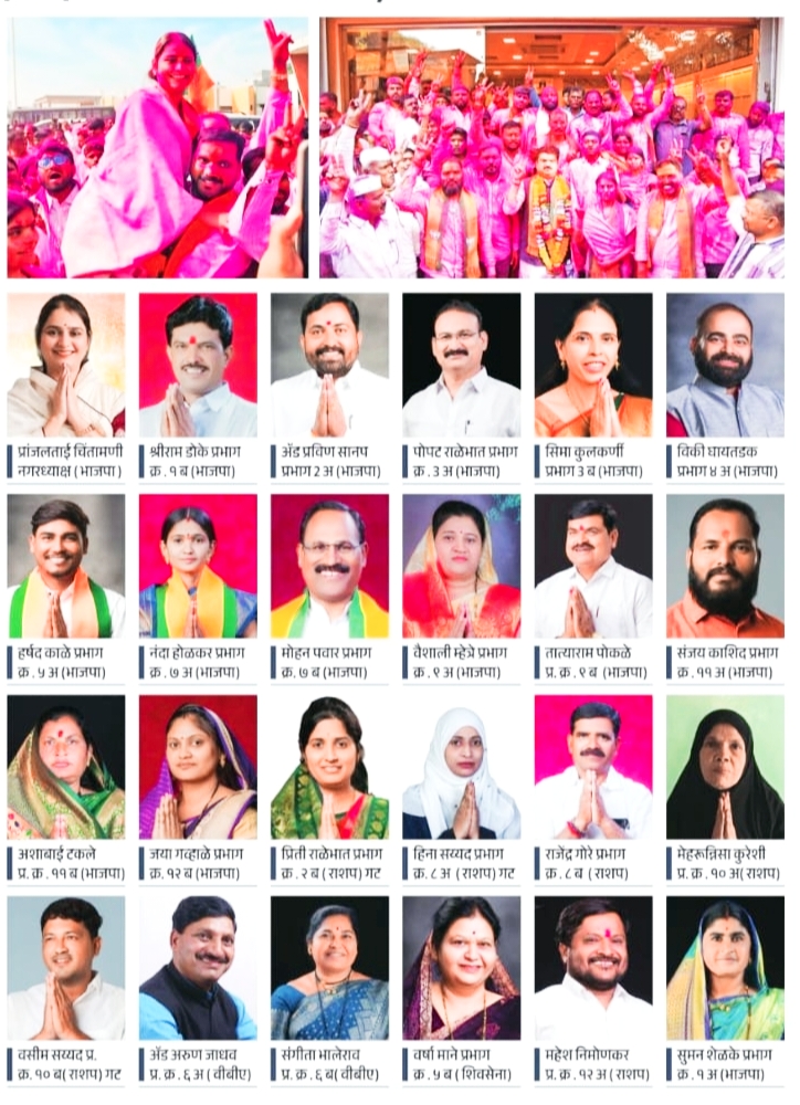 यांना ६,०७२ मते मिळाली असून त्यांना पराभव स्वीकारावा लागला. या निवडणुकीत भाजपाने एकूण १५ नगरसेवक निवडून आणत नगरपरिषदेत स्पष्ट बहुमत मिळवले आहे. राष्ट्रवादी काँग्रेस (शरदचंद्र पवार) पक्षाने ५ जागांवर, वंचित बहुजन आघाडीने २ जागांवर विजय मिळवत खाते उघडले आहे. शिवसेना (एकनाथ शिंदे) पक्षाला १, तर राष्ट्रवादी काँग्रेस (अजित पवार) पक्षाला १ जागा मिळाली आहे. निकालानंतर शहराच्या राजकारणात भाजपाचे वर्चस्व पुन्हा एकदा अधोरेखित झाले आहे.