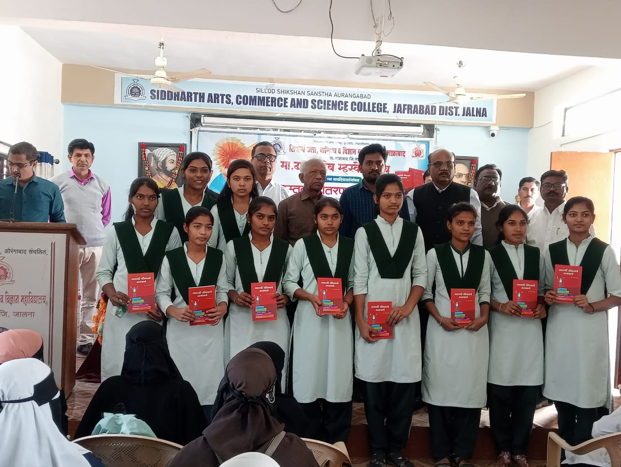 कार्यक्रमाच्या अध्यक्षस्थानी महाविद्यालयाचे प्राचार्य डॉ.रमेश देशमुख हे होते यावेळी विचार मंचावर उपप्राचार्य प्रो.डॉ.सुनील मेढे उपप्राचार्य डॉ.श्याम सर्जे उपप्राचार्य प्रा.विनोद हिवराळे आणि पुस्तकाचे लेखक प्रो.डॉ.सतीश ठोंबरे यांची प्रमुख उपस्थिती होती. सिल्लोड शिक्षण संस्था संचलित छत्रपती संभाजीनगर चे संस्थापक अध्यक्ष शिक्षण महर्षी मा.दादासाहेब म्हस्के यांचा वाढदिवस दरवर्षी विविध उपक्रमाने साजरा केला जातो याचेच औचित्य साधून डॉ.सतीश ठोंबरे लिखित यशस्वी जीवनाचे राजमार्ग या पुस्तकाचे वाटप करण्यात आले. यावेळी जाफराबाद तालुक्यातील विविध कनिष्ठ महाविद्यालयातील विद्यार्थी सहभागी झाले होते.सदर विद्यार्थ्यांना मा.दादासाहेब म्हस्के यांच्या हस्ते पुस्तकाचे वाटप करण्यात आले. तसेच सिद्धार्थ महाविद्यालयातील शालेय क्रीडा स्पर्धा मध्ये राज्यस्तरीय खेळाडूंना ट्रॅक सूट चे ही वाटप करण्यात आले. कार्यक्रमाचे प्रास्ताविक उपप्राचार्य प्रो.डॉ.सुनील मेढे यांनी केले तर पुस्तकाचे लेखक डॉ.सतीश ठोंबरे यांनी आपल्या मनोगतामध्ये यशस्वी जीवनाचा राजमार्ग या पुस्तकामुळे विद्यार्थ्यांना स्पर्धा परीक्षेची तयारी करणे सोपे जाईल ग्रामीण भागातील विद्यार्थ्यांना योग्य वेळी योग्य मार्गदर्शन जर लाभले तर ते जीवनामध्ये यशस्वी होतील तेव्हा विद्यार्थ्यांनी सदरील पुस्तकाचे वाचन करून आपल्या जीवनाचा मार्ग ठरवावा असे आवाहन केले तर मा. दादासाहेब मस्के यांनी सुद्धा ग्रामीण भागातील विद्यार्थ्यांनी क्रमिक अभ्यासक्रमाबरोबरच केंद्रीय लोकसेवा आयोग असेल किंवा अन्य स्पर्धा परीक्षा असतील यासाठी आपल्या महाविद्यालयामध्ये स्पर्धा परीक्षा मार्गदर्शन केंद्र आहे त्या केंद्रामार्फत योग्य ते मार्गदर्शन घेऊन तसेच आपल्या महाविद्यालयाच्या ग्रंथालयामध्ये क्रमिक पुस्तकांबरोबर स्पर्धा परीक्षांचेही अनेक पुस्तके उपलब्ध आहेत त्यांचाही अभ्यास करून स्पर्धा परीक्षेला सामोरे जाण्याचे आवाहन केले.अध्यक्षीय समारोपात प्राचार्य डॉ.रमेश देशमुख यांनी उपस्थित विद्यार्थ्यांना सखोल असे मार्गदर्शन केले. कार्यक्रमाचे सूत्रसंचालन प्रा.एस.एम.पाटील यांनी केले तर आभार प्रा.बी.ए.येवले यांनी मानले. या कार्यक्रमास महाविद्यालयातील प्रसिद्ध प्रमुख प्रा.अनिल वैद्य, स्पर्धा परीक्षा मार्गदर्शन केंद्राचे प्रमुख प्रोफेसर डॉ.विजय पाटील तसेच महाविद्यालयातील प्राध्यापक शिक्षकेत्तर कर्मचारी मोठ्या संख्येने उपस्थित होते.शेवटी राष्ट्रगीताने कार्यक्रमाची सांगता झाली.