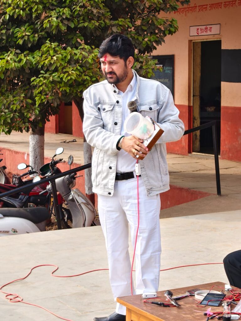 - प्रात्यक्षिक: सौर ऊर्जेचा वापर करून चालणारी उपकरणे आणि सौर ऊर्जा ही इतर ऊर्जास्रोतांच्या (कोळसा, इंधन) तुलनेत कशी प्रदूषणमुक्त आणि फायदेशीर आहे, याचे सखोल दर्शन विद्यार्थ्यांना घडवण्यात आले.