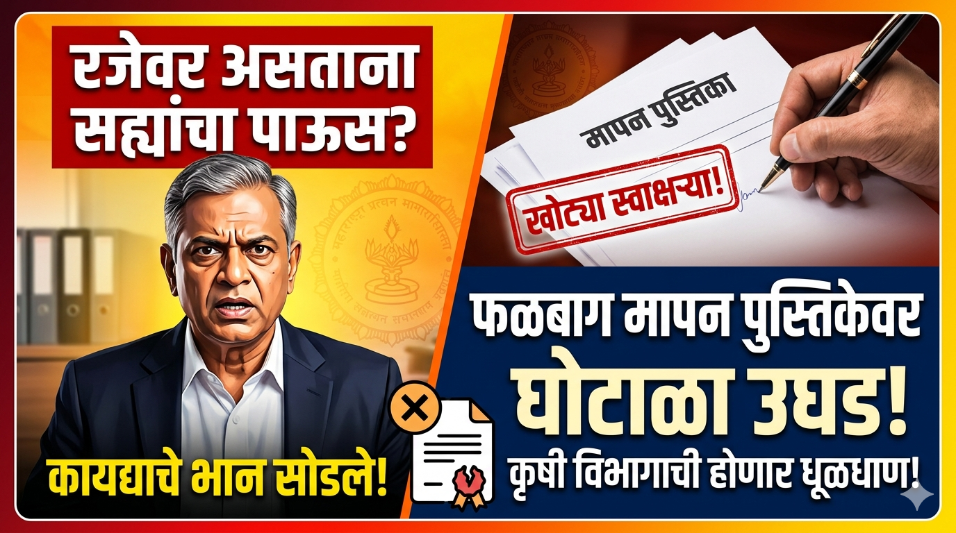 वाशिम: मंगरूळपीर तालुक्यातील रोजगार हमी योजना फळबाग अनुदान प्रकरणातील ‘घोळ’ आता टोकाला पोहोचला आहे. दोषी कर्मचाऱ्यांना वाचवण्यासाठी कृषी विभागातील काही महाभागांनी चक्क रजेवर असताना आणि पदावर नसतानाही मापन पुस्तिकेवर (Measurement Book) सह्या ठोकल्याचा खळबळजनक प्रकार समोर आला आहे. नियमांची पायमल्ली करत रचलेला हा बनाव आता अधिकाऱ्यांच्याच अंगाशी येण्याची शक्यता निर्माण झाली आहे.