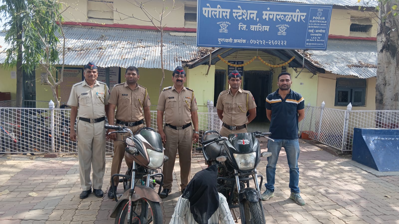 मंगरूळपिर पोलीस स्टेशन येथे दिनांक ०१/०४/२०२६ व ०३/०४/२०२६ रोजी फिर्यादी नामे विनोद तुळशीराम जाधव व अश्विन शिवचंद चव्हाण दोन्ही मंगरूळपिर असुन त्यांनी समक्ष पोलीस स्टेशन मंगरूळपिर येथे हजर येवुन जबाणी रिपोर्ट दिला की, फिर्यादी नामे विनोद तुळशीराम जाधव यांची हिरो होन्डा फॅशन प्रोव्ह कंपनीची काळयारंगाची मो.सा क एमएच ३० ए आर १७८७ किंमत अंदाजे ३०.००० रू दिनांक ०१/०४/२०२६ रोजी जांब रोड मंगरूळपिर येथे तक्रारदार यांचे राहते घराजवळुन व फिर्यादी नामे अश्विन शिवचंद चव्हाण यांची हिरो होन्डा फॅशन प्रोव्ह कंपनीची काळयारंगाची मो.सा क एमएच ३७ क्यु ६३७४ किंमत अंदाजे ३०.००० अशा वर्णाची दिनांक ०३/०४/२०२६ रोजी बस संस्थानक मंगरूळपिर परीसरातुन चोरी गेले वरून अज्ञात आरोपी विरूध्द कलम ३०३ (२) bns act 2023 अन्वये गुन्हे दाखल करून तपास डि.बी.पथक मंगरूळपिर यांनी घेतला.सदर गुन्हयाचे तपासांत मंगरूळपिर शहर परीसरातील ठिकठिकाणचे सिसिटिव्ही फुटेज पाहणी करून गुन्हयात चोरी गेलेला माल व अज्ञात आरोपीचा शोध सातत्यने घेवुन गोपणीय बातमीदारद्वारे गोपणीय माहीती गोळा करून संशयीत इसम यांचे कडुन सखोल चोकशी करून संशयीत इसमाने वर नमुद गुन्हयातील दोन्ही वाहान चोरी केल्याचे कबुली दिल्यांने व निष्पन्न झाल्याने आरोपी नामे शुभम पुंडलिक मनवर वय १९ वर्षे रा. निंबी ता. मंगरूळपिर यांना नमुद गुन्हयात अटक करून आरोपी कडुन मेमोरंडम पंचनामा द्वारे वरील दोन्ही वाहन गुन्हयात जप्त केली असुन मंगरूळपिर पोलीसांनी अशी उत्कुष्ठ कामगीरी बजवलेली आहे.सदरची कामगीरी पोलीस अधिक्षक अनुज तारे व अपर पोलीस अधिक्षक लता फड तसेच उपविभागीय पोलीस अधिकारी मंगरूळपिर विशाल क्षिरसागर पोलीस निरीक्षक किशोर शेळके पोलीस स्टेशन मंगरूळपिर यांच्या मार्गदर्शनाखाली पोलीस स्टेशन मंगरूळपिर चे सपोनि / गणेश काळे पोहवा / ३० संजय घाटोळे पोशि/ ९१४ प्रमोद वानखडे पोशि/ २७५ रफिक मांजरे पोशि/ ३४५ प्रविण माळकर पोशि/१४११ गजानन ब्राहमण पोशि/ १३९३ मनीष आडे व चालक पोशि/१०५७ आशिष रघुवंशी यांनी केली आहे.