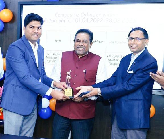 त्याच निमित्ताने महाराष्ट्र राज्यात सर्वात जास्त कंपोझिट सिलेंडर विक्री करणाऱ्या इंडियन ऑइल अधिकाऱ्यांचा पुरस्कार देऊन सत्कार करण्यात आला